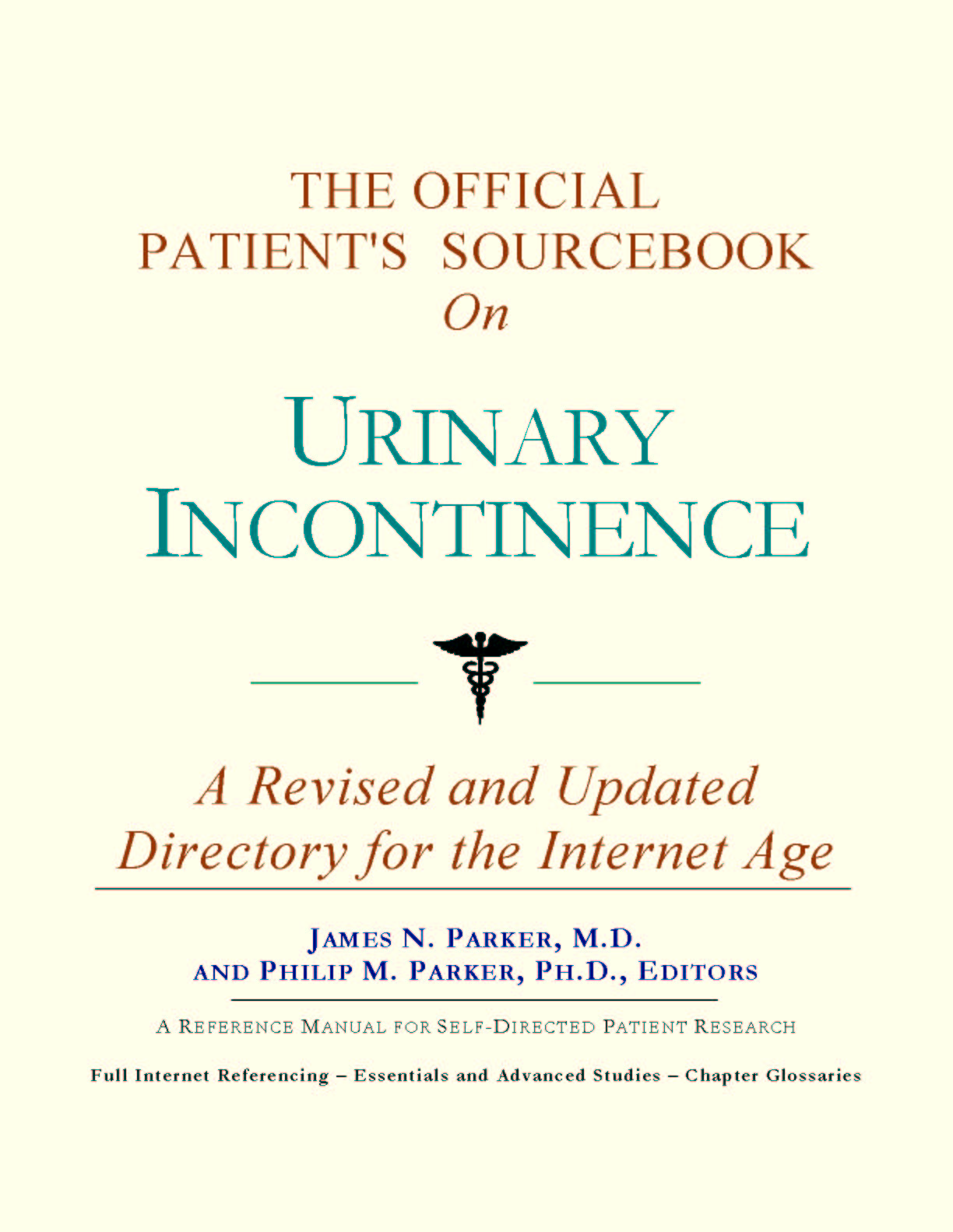 For the purposes of this sourcebook, we have attempted to be as inclusive as possible, looking for official information for all of the synonyms relevant to urinary incontinence. You may find it useful to refer to synonyms when accessing databases or interacting with healthcare professionals and medical librarians. Moving Forward Since the 1980s, the world has seen a proliferation of healthcare guides covering most illnesses. Some are written by patients or their family members. These generally take a layperson's approach to understanding and coping with an illness or disorder. They can be uplifting, encouraging, and highly supportive. Other guides are authored by physicians or other healthcare providers who have a more clinical outlook. Each of these two styles of guide has its purpose and can be quite useful. As editors, we have chosen a third route. We have chosen to expose you to as many sources of official and peer-reviewed information as practical, for the purpose of educating you about basic and advanced knowledge as recognized by medical science today. You can think of this sourcebook as your personal Internet age reference librarian. Why “Internet age”? All too often, patients diagnosed with urinary incontinence will log on to the Internet, type words into a search engine, and receive several Web site listings which are mostly irrelevant or redundant. These patients are left to wonder where the relevant information is, and how to obtain it. Since only the smallest fraction of information dealing with urinary incontinence is even indexed in search engines, a non-systematic approach often leads to frustration and disappointment. With this sourcebook, we hope to direct you to the information you need that you would not likely find using popular Web directories. Beyond Web listings, in many cases we will reproduce brief summaries or abstracts of available reference materials. These abstracts often contain distilled information on topics of discussion. While we focus on the more scientific aspects of urinary incontinence, there is, of course, the emotional side to consider. Later in the sourcebook, we provide a chapter dedicated to helping you find peer groups and associations that can provide additional support beyond research produced by medical science. We hope that the choices we have made give you the most options available in moving forward. In this way, we wish you the best in your efforts to incorporate this educational approach into your treatment plan. |