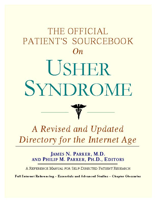 Since the late 1990s, physicians have seen a general increase in patient Internet usage rates. Patients frequently enter their doctor's offices with printed Web pages of home remedies in the guise of latest medical research. This scenario is so common that doctors often spend more time dispelling misleading information than guiding patients through sound therapies. The Official Patient’s Sourcebook on Usher Syndrome has been created for patients who have decided to make education and research an integral part of the treatment process. The pages that follow will tell you where and how to look for information covering virtually all topics related to Usher syndrome, from the essentials to the most advanced areas of research. The title of this book includes the word “official.” This reflects the fact that the sourcebook draws from public, academic, government, and peer-reviewed research. Selected readings from various agencies are reproduced to give you some of the latest official information available to date on Usher syndrome. Given patients’ increasing sophistication in using the Internet, abundant references to reliable Internet-based resources are provided throughout this sourcebook. Where possible, guidance is provided on how to obtain free-of-charge, primary research results as well as more detailed information via the Internet. E-book and electronic versions of this sourcebook are fully interactive with each of the Internet sites mentioned (clicking on a hyperlink automatically opens your browser to the site indicated). Hard copy users of this sourcebook can type cited Web addresses directly into their browsers to obtain access to the corresponding sites. Since we are working with ICON Health Publications, hard copy Sourcebooks are frequently updated and printed on demand to ensure that the information provided is current. In addition to extensive references accessible via the Internet, every chapter presents a “Vocabulary Builder.” Many health guides offer glossaries of technical or uncommon terms in an appendix. In editing this sourcebook, we have decided to place a smaller glossary within each chapter that covers terms used in that chapter. Given the technical nature of some chapters, you may need to revisit many sections. Building one’s vocabulary of medical terms in such a gradual manner has been shown to improve the learning process. We must emphasize that no sourcebook on Usher syndrome should affirm that a specific diagnostic procedure or treatment discussed in a research study, patent, or doctoral dissertation is “correct” or your best option. This sourcebook is no exception. Each patient is unique. Deciding on appropriate options is always up to the patient in consultation with their physician and healthcare providers. Organization This sourcebook is organized into three parts. Part I explores basic techniques to researching Usher syndrome (e.g. finding guidelines on diagnosis, treatments, and prognosis), followed by a number of topics, including information on how to get in touch with organizations, associations, or other patient networks dedicated to Usher syndrome. It also gives you sources of information that can help you find a doctor in your local area specializing in treating Usher syndrome. Collectively, the material presented in Part I is a complete primer on basic research topics for patients with Usher syndrome. Part II moves on to advanced research dedicated to Usher syndrome. Part II is intended for those willing to invest many hours of hard work and study. It is here that we direct you to the latest scientific and applied research on Usher syndrome. When possible, contact names, links via the Internet, and summaries are provided. It is in Part II where the vocabulary process becomes important as authors publishing advanced research frequently use highly specialized language. In general, every attempt is made to recommend “free-to-use” options. Part III provides appendices of useful background reading for all patients with Usher syndrome or related disorders. The appendices are dedicated to more pragmatic issues faced by many patients with Usher syndrome. Accessing materials via medical libraries may be the only option for some readers, so a guide is provided for finding local medical libraries which are open to the public. Part III, therefore, focuses on advice that goes beyond the biological and scientific issues facing patients with Usher syndrome. Scope While this sourcebook covers Usher syndrome, your doctor, research publications, and specialists may refer to your condition using a variety of terms. Therefore, you should understand that Usher syndrome is often considered a synonym or a condition closely related to the following: