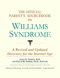 Since the late 1990s, physicians have seen a general increase in parent Internet usage rates. Parents frequently enter their children’s doctor’s offices with printed Web pages of home remedies in the guise of latest medical research. This scenario is so common that doctors often spend more time dispelling misleading information than guiding children through sound therapies. The Official Parent’s Sourcebook on Williams Syndrome has been created for parents who have decided to make education and research an integral part of the treatment process. The pages that follow will tell you where and how to look for information covering virtually all topics related to Williams syndrome, from the essentials to the most advanced areas of research. The title of this book includes the word “official.” This reflects the fact that the sourcebook draws from public, academic, government, and peer-reviewed research. Selected readings from various agencies are reproduced to give you some of the latest official information available to date on Williams syndrome. Given parents’ increasing sophistication in using the Internet, abundant references to reliable Internet-based resources are provided throughout this sourcebook. Where possible, guidance is provided on how to obtain free-of-charge, primary research results as well as more detailed information via the Internet. E-book and electronic versions of this sourcebook are fully interactive with each of the Internet sites mentioned (clicking on a hyperlink automatically opens your browser to the site indicated). Hard copy users of this sourcebook can type cited Web addresses directly into their browsers to obtain access to the corresponding sites. Since we are working with ICON Health Publications, hard copy Sourcebooks are frequently updated and printed on demand to ensure that the information provided is current. In addition to extensive references accessible via the Internet, every chapter presents a “Vocabulary Builder.” Many health guides offer glossaries of technical or uncommon terms in an appendix. In editing this sourcebook, we have decided to place a smaller glossary within each chapter that covers terms used in that chapter. Given the technical nature of some chapters, you may need to revisit many sections. Building one’s vocabulary of medical terms in such a gradual manner has been shown to improve the learning process. We must emphasize that no sourcebook on Williams syndrome should affirm that a specific diagnostic procedure or treatment discussed in a research study, patent, or doctoral dissertation is “correct” or your child’s best option. This sourcebook is no exception. Each child is unique. Deciding on appropriate options is always up to parents in consultation with their children’s physicians and healthcare providers. Organization This sourcebook is organized into three parts. Part I explores basic techniques to researching Williams syndrome (e.g. finding guidelines on diagnosis, treatments, and prognosis), followed by a number of topics, including information on how to get in touch with organizations, associations, or other parent networks dedicated to Williams syndrome. It also gives you sources of information that can help you find a doctor in your local area specializing in treating Williams syndrome. Collectively, the material presented in Part I is a complete primer on basic research topics for Williams syndrome. Part II moves on to advanced research dedicated to Williams syndrome. Part II is intended for those willing to invest many hours of hard work and study. It is here that we direct you to the latest scientific and applied research on Williams syndrome. When possible, contact names, links via the Internet, and summaries are provided. It is in Part II where the vocabulary process becomes important as authors publishing advanced research frequently use highly specialized language. In general, every attempt is made to recommend “free-to-use” options. Part III provides appendices of useful background reading covering Williams syndrome or related disorders. The appendices are dedicated to more pragmatic issues facing parents. Accessing materials via medical libraries may be the only option for some parents, so a guide is provided for finding local medical libraries which are open to the public. Part III, therefore, focuses on advice that goes beyond the biological and scientific issues facing children with Williams syndrome and their families. Scope While this sourcebook covers Williams syndrome, doctors, research publications, and specialists may refer to your child’s condition using a variety of terms. Therefore, you should understand that Williams syndrome is often considered a synonym or a condition closely related to the following: