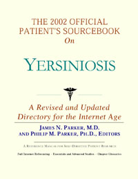 Since the late 1990s, physicians have seen a general increase in patient Internet usage rates. Patients frequently enter their doctor’s offices with printed Web pages of home remedies in the guise of latest medical research. This scenario is so common that doctors often spend more time dispelling misleading information than guiding patients through sound therapies. The 2002 Official Patient’s Sourcebook on Yersiniosis has been created for patients who have decided to make education and research an integral part of the treatment process. The pages that follow will tell you where and how to look for information covering virtually all topics related to yersiniosis, from the essentials to the most advanced areas of research. The title of this book includes the word “official.” This reflects the fact that the sourcebook draws from public, academic, government, and peer-reviewed research. Selected readings from various agencies are reproduced to give you some of the latest official information available to date on yersiniosis. Given patients’ increasing sophistication in using the Internet, abundant references to reliable Internet-based resources are provided throughout this sourcebook. Where possible, guidance is provided on how to obtain free-of-charge, primary research results as well as more detailed information via the Internet. E-book and electronic versions of this sourcebook are fully interactive with each of the Internet sites mentioned (clicking on a hyperlink automatically opens your browser to the site indicated). Hard copy users of this sourcebook can type cited Web addresses directly into their browsers to obtain access to the corresponding sites. Since we are working with ICON Health Publications, hard copy Sourcebooks are frequently updated and printed on demand to ensure that the information provided is current. In addition to extensive references accessible via the Internet, every chapter presents a “Vocabulary Builder.” Many health guides offer glossaries of technical or uncommon terms in an appendix. In editing this sourcebook, we have decided to place a smaller glossary within each chapter that covers terms used in that chapter. Given the technical nature of some chapters, you may need to revisit many sections. Building one’s vocabulary of medical terms in such a gradual manner has been shown to improve the learning process. We must emphasize that no sourcebook on yersiniosis should affirm that a specific diagnostic procedure or treatment discussed in a research study, patent, or doctoral dissertation is “correct” or your best option. This sourcebook is no exception. Each patient is unique. Deciding on appropriate options is always up to the patient in consultation with their physician and healthcare providers. Organization This sourcebook is organized into three parts. Part I explores basic techniques to researching yersiniosis (e.g. finding guidelines on diagnosis, treatments, and prognosis), followed by a number of topics, including information on how to get in touch with organizations, associations, or other patient networks dedicated to yersiniosis. It also gives you sources of information that can help you find a doctor in your local area specializing in treating yersiniosis. Collectively, the material presented in Part I is a complete primer on basic research topics for patients with yersiniosis. Part II moves on to advanced research dedicated to yersiniosis. Part II is intended for those willing to invest many hours of hard work and study. It is here that we direct you to the latest scientific and applied research on yersiniosis. When possible, contact names, links via the Internet, and summaries are provided. It is in Part II where the vocabulary process becomes important as authors publishing advanced research frequently use highly specialized language. In general, every attempt is made to recommend “free-to-use” options. Part III provides appendices of useful background reading for all patients with yersiniosis or related disorders. The appendices are dedicated to more pragmatic issues faced by many patients with yersiniosis. Accessing materials via medical libraries may be the only option for some readers, so a guide is provided for finding local medical libraries which are open to the public. Part III, therefore, focuses on advice that goes beyond the biological and scientific issues facing patients with yersiniosis. Scope While this sourcebook covers yersiniosis, your doctor, research publications, and specialists may refer to your condition using a variety of terms. Therefore, you should understand that yersiniosis is often considered a synonym or a condition closely related to the following: