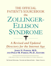 Since the late 1990s, physicians have seen a general increase in patient Internet usage rates. Patients frequently enter their doctor’s offices with printed Web pages of home remedies in the guise of latest medical research. This scenario is so common that doctors often spend more time dispelling misleading information than guiding patients through sound therapies. The Official Patient’s Sourcebook on Zollinger-Ellison Syndrome has been created for patients who have decided to make education and research an integral part of the treatment process. The pages that follow will tell you where and how to look for information covering virtually all topics related to Zollinger-Ellison syndrome, from the essentials to the most advanced areas of research. The title of this book includes the word “official.” This reflects the fact that the sourcebook draws from public, academic, government, and peer-reviewed research. Selected readings from various agencies are reproduced to give you some of the latest official information available to date on Zollinger-Ellison syndrome. Given patients’ increasing sophistication in using the Internet, abundant references to reliable Internet-based resources are provided throughout this sourcebook. Where possible, guidance is provided on how to obtain free-of-charge, primary research results as well as more detailed information via the Internet. E-book and electronic versions of this sourcebook are fully interactive with each of the Internet sites mentioned (clicking on a hyperlink automatically opens your browser to the site indicated). Hard copy users of this sourcebook can type cited Web addresses directly into their browsers to obtain access to the corresponding sites. Since we are working with ICON Health Publications, hard copy Sourcebooks are frequently updated and printed on demand to ensure that the information provided is current. In addition to extensive references accessible via the Internet, every chapter presents a “Vocabulary Builder.” Many health guides offer glossaries of technical or uncommon terms in an appendix. In editing this sourcebook, we have decided to place a smaller glossary within each chapter that covers terms used in that chapter. Given the technical nature of some chapters, you may need to revisit many sections. Building one’s vocabulary of medical terms in such a gradual manner has been shown to improve the learning process. We must emphasize that no sourcebook on Zollinger-Ellison syndrome should affirm that a specific diagnostic procedure or treatment discussed in a research study, patent, or doctoral dissertation is “correct” or your best option. This sourcebook is no exception. Each patient is unique. Deciding on appropriate options is always up to the patient in consultation with their physician and healthcare providers. Organization This sourcebook is organized into three parts. Part I explores basic techniques to researching Zollinger-Ellison syndrome (e.g. finding guidelines on diagnosis, treatments, and prognosis), followed by a number of topics, including information on how to get in touch with organizations, associations, or other patient networks dedicated to Zollinger-Ellison syndrome. It also gives you sources of information that can help you find a doctor in your local area specializing in treating Zollinger-Ellison syndrome. Collectively, the material presented in Part I is a complete primer on basic research topics for patients with Zollinger-Ellison syndrome. Part II moves on to advanced research dedicated to Zollinger-Ellison syndrome. Part II is intended for those willing to invest many hours of hard work and study. It is here that we direct you to the latest scientific and applied research on Zollinger-Ellison syndrome. When possible, contact names, links via the Internet, and summaries are provided. It is in Part II where the vocabulary process becomes important as authors publishing advanced research frequently use highly specialized language. In general, every attempt is made to recommend “free-to-use” options. Part III provides appendices of useful background reading for all patients with Zollinger-Ellison syndrome or related disorders. The appendices are dedicated to more pragmatic issues faced by many patients with Zollinger-Ellison syndrome. Accessing materials via medical libraries may be the only option for some readers, so a guide is provided for finding local medical libraries which are open to the public. Part III, therefore, focuses on advice that goes beyond the biological and scientific issues facing patients with Zollinger-Ellison syndrome. Scope While this sourcebook covers Zollinger-Ellison syndrome, your doctor, research publications, and specialists may refer to your condition using a variety of terms. Therefore, you should understand that Zollinger-Ellison syndrome is often considered a synonym or a condition closely related to the following: