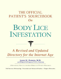 Since the late 1990s, physicians have seen a general increase in patient Internet usage rates. Patients frequently enter their doctor’s offices with printed Web pages of home remedies in the guise of latest medical research. This scenario is so common that doctors often spend more time dispelling misleading information than guiding patients through sound therapies. The Official Patient’s Sourcebook on Body Lice Infestation has been created for patients who have decided to make education and research an integral part of the treatment process. The pages that follow will tell you where and how to look for information covering virtually all topics related to body lice infestation, from the essentials to the most advanced areas of research. The title of this book includes the word “official.” This reflects the fact that the sourcebook draws from public, academic, government, and peer-reviewed research. Selected readings from various agencies are reproduced to give you some of the latest official information available to date on body lice infestation. Given patients’ increasing sophistication in using the Internet, abundant references to reliable Internet-based resources are provided throughout this sourcebook. Where possible, guidance is provided on how to obtain free-of-charge, primary research results as well as more detailed information via the Internet. E-book and electronic versions of this sourcebook are fully interactive with each of the Internet sites mentioned (clicking on a hyperlink automatically opens your browser to the site indicated). Hard copy users of this sourcebook can type cited Web addresses directly into their browsers to obtain access to the corresponding sites. Since we are working with ICON Health Publications, hard copy Sourcebooks are frequently updated and printed on demand to ensure that the information provided is current. In addition to extensive references accessible via the Internet, every chapter presents a “Vocabulary Builder.” Many health guides offer glossaries of technical or uncommon terms in an appendix. In editing this sourcebook, we have decided to place a smaller glossary within each chapter that covers terms used in that chapter. Given the technical nature of some chapters, you may need to revisit many sections. Building one’s vocabulary of medical terms in such a gradual manner has been shown to improve the learning process. We must emphasize that no sourcebook on body lice infestation should affirm that a specific diagnostic procedure or treatment discussed in a research study, patent, or doctoral dissertation is “correct” or your best option. This sourcebook is no exception. Each patient is unique. Deciding on appropriate options is always up to the patient in consultation with their physician and healthcare providers. Organization This sourcebook is organized into three parts. Part I explores basic techniques to researching body lice infestation (e.g. finding guidelines on diagnosis, treatments, and prognosis), followed by a number of topics, including information on how to get in touch with organizations, associations, or other patient networks dedicated to body lice infestation. It also gives you sources of information that can help you find a doctor in your local area specializing in treating body lice infestation. Collectively, the material presented in Part I is a complete primer on basic research topics for patients with body lice infestation. Part II moves on to advanced research dedicated to body lice infestation. Part II is intended for those willing to invest many hours of hard work and study. It is here that we direct you to the latest scientific and applied research on body lice infestation. When possible, contact names, links via the Internet, and summaries are provided. It is in Part II where the vocabulary process becomes important as authors publishing advanced research frequently use highly specialized language. In general, every attempt is made to recommend “free-to-use” options. Part III provides appendices of useful background reading for all patients with body lice infestation or related disorders. The appendices are dedicated to more pragmatic issues faced by many patients with body lice infestation. Accessing materials via medical libraries may be the only option for some readers, so a guide is provided for finding local medical libraries which are open to the public. Part III, therefore, focuses on advice that goes beyond the biological and scientific issues facing patients with body lice infestation. Scope While this sourcebook covers body lice infestation, your doctor, research publications, and specialists may refer to your condition using a variety of terms. Therefore, you should understand that body lice infestation is often considered a synonym or a condition closely related to the following: