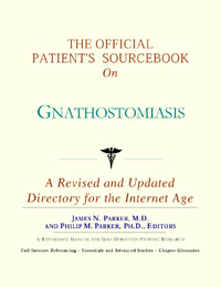 Since the late 1990s, physicians have seen a general increase in patient Internet usage rates. Patients frequently enter their doctor’s offices with printed Web pages of home remedies in the guise of latest medical research. This scenario is so common that doctors often spend more time dispelling misleading information than guiding patients through sound therapies. The Official Patient’s Sourcebook on Gnathostomiasis has been created for patients who have decided to make education and research an integral part of the treatment process. The pages that follow will tell you where and how to look for information covering virtually all topics related to gnathostomiasis, from the essentials to the most advanced areas of research. The title of this book includes the word “official.” This reflects the fact that the sourcebook draws from public, academic, government, and peer-reviewed research. Selected readings from various agencies are reproduced to give you some of the latest official information available to date on gnathostomiasis. Given patients’ increasing sophistication in using the Internet, abundant references to reliable Internet-based resources are provided throughout this sourcebook. Where possible, guidance is provided on how to obtain free-of-charge, primary research results as well as more detailed information via the Internet. E-book and electronic versions of this sourcebook are fully interactive with each of the Internet sites mentioned (clicking on a hyperlink automatically opens your browser to the site indicated). Hard copy users of this sourcebook can type cited Web addresses directly into their browsers to obtain access to the corresponding sites. Since we are working with ICON Health Publications, hard copy Sourcebooks are frequently updated and printed on demand to ensure that the information provided is current. In addition to extensive references accessible via the Internet, every chapter presents a “Vocabulary Builder.” Many health guides offer glossaries of technical or uncommon terms in an appendix. In editing this sourcebook, we have decided to place a smaller glossary within each chapter that covers terms used in that chapter. Given the technical nature of some chapters, you may need to revisit many sections. Building one’s vocabulary of medical terms in such a gradual manner has been shown to improve the learning process. We must emphasize that no sourcebook on gnathostomiasis should affirm that a specific diagnostic procedure or treatment discussed in a research study, patent, or doctoral dissertation is “correct” or your best option. This sourcebook is no exception. Each patient is unique. Deciding on appropriate options is always up to the patient in consultation with their physician and healthcare providers. Organization This sourcebook is organized into three parts. Part I explores basic techniques to researching gnathostomiasis (e.g. finding guidelines on diagnosis, treatments, and prognosis), followed by a number of topics, including information on how to get in touch with organizations, associations, or other patient networks dedicated to gnathostomiasis. It also gives you sources of information that can help you find a doctor in your local area specializing in treating gnathostomiasis. Collectively, the material presented in Part I is a complete primer on basic research topics for patients with gnathostomiasis. Part II moves on to advanced research dedicated to gnathostomiasis. Part II is intended for those willing to invest many hours of hard work and study. It is here that we direct you to the latest scientific and applied research on gnathostomiasis. When possible, contact names, links via the Internet, and summaries are provided. It is in Part II where the vocabulary process becomes important as authors publishing advanced research frequently use highly specialized language. In general, every attempt is made to recommend “free-to-use” options. Part III provides appendices of useful background reading for all patients with gnathostomiasis or related disorders. The appendices are dedicated to more pragmatic issues faced by many patients with gnathostomiasis. Accessing materials via medical libraries may be the only option for some readers, so a guide is provided for finding local medical libraries which are open to the public. Part III, therefore, focuses on advice that goes beyond the biological and scientific issues facing patients with gnathostomiasis. Scope While this sourcebook covers gnathostomiasis, your doctor, research publications, and specialists may refer to your condition using a variety of terms. Therefore, you should understand that gnathostomiasis is often considered a synonym or a condition closely related to the following: